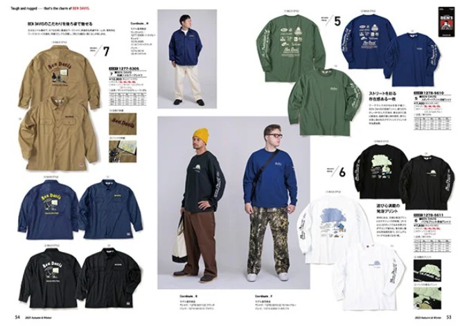 2025年秋冬カタログでは、NEW ERA(ニューエラ)、RUSTY(ラスティ)、DCSHOES(ディーシーシューズ)、BEN DAVIS(ベン デイビス)、OUTDOOR PRODUCTS(アウトドア プロダクツ)など、秋冬に大活躍するアイテムが盛り沢山。