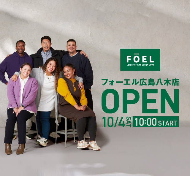 「ここには、私のサイズがちゃんとある」。その確かな実感は、外見だけでなく、内面にもポジティブな変化をもたらします。フォーエル広島八木店は、大きいサイズのファッションに新たな価値を生み出す拠点。おしゃれに悩んできた誰かの、これからを変えるきっかけになる場所です。